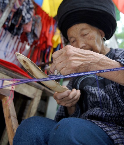 織花帶,據(jù)有關(guān)史書記載:“南蠻斷發(fā)紋身,以示與龍蛇同類,免其傷害。”原來,苗家姑娘織花帶是為了防蛇傷身,所織花帶以假亂真,其花紋形同蛇樣,使蛇誤認(rèn)為是同類,使人不受其害。怪不得本書作者在苗家做客時(shí),曾聽到一個(gè)美好的傳說:在古代,因居住在苗嶺山區(qū)的人經(jīng)常遭受毒蛇的傷害,便有一個(gè)美麗聰明的姑娘想出了一個(gè)辦法,她見蛇遇同類便迅速離開,就仿照蛇的花紋編織了約一寸寬的一種花帶。這種花帶平時(shí)上山纏在身上,如遇毒蛇就取下花帶對(duì)蛇一擺弄,這樣毒蛇見了以為是同類,便迅速離開了。這個(gè)辦法很靈,使許多苗家人免受了傷害。自那以后,苗族織花帶也就一代一代傳下來了。苗族花帶經(jīng)代代相傳,越織越快,越織越美,它由原來單一的為了防止蛇傷發(fā)展到現(xiàn)在的多種用途,如作為青年戀愛的信物,饋贈(zèng)親友的禮品,也用于提包的背帶和一部分家具的裝飾等等?;◣У膱D案紋樣也越來越豐富了,有表現(xiàn)吉祥與愛情生活的,如《雙喜臨門》、《五谷豐登》、《鴛鴦戲水》等,也有表現(xiàn)花卉的,如《秋菊》、《蘭草》等等。苗族姑娘編織花帶的工藝也有進(jìn)步,以前織一根花帶,要幾天,現(xiàn)在,只見她們手拿一根牛骨針(也有用銅針與銀針的),如流星閃爍一般,揮針走線,一根一米長的花帶很快就織成了。 苗族同胞特別好客,他們很講禮貌,重感情、守諾言,待人誠懇、憨厚樸實(shí),不虛偽。他們歷來主持正義,扶正斥邪,路見不平,撥刀相助、赴湯蹈火,在所不辭。