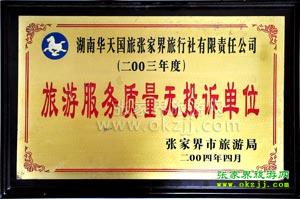 湖南省2004年度最佳旅行社 湖南省旅游局(2005.2)
