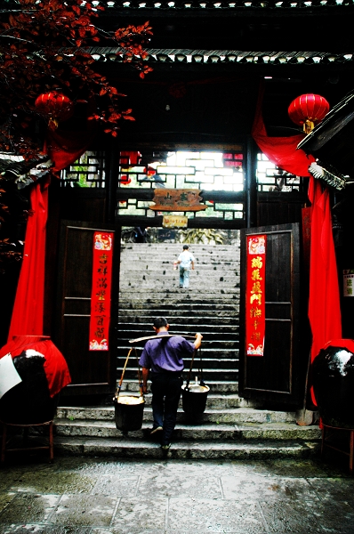 土家風(fēng)情園土司城坐落于張家界市區(qū),景區(qū)總占地面積80余畝,總投資7500萬(wàn)元,主要項(xiàng)目有土司城和畢茲卡圣火堂,土司城原為永定土司城,是一座古老的土家山寨。土司城內(nèi)有醉人的土家欄門酒,神秘的土家祭祖活動(dòng)、土家歷史文物展示、土家民俗演示、“九重天”“千人毛古斯”兩項(xiàng)世界吉尼斯之最。