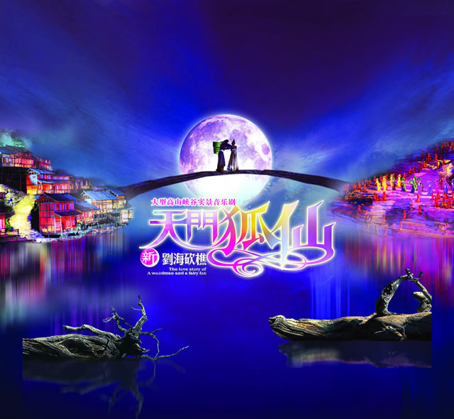 《天門狐仙——新劉??抽浴纺壳笆鞘澜绲谝慌_(tái)有完整故事情節(jié)的山水實(shí)景音樂(lè)歌舞劇。舞臺(tái)選址在天門山風(fēng)景區(qū)山門口內(nèi)至天門山頂?shù)恼麠l峽谷,總投資達(dá)到1.2億元,演員隊(duì)伍達(dá)530多人。主舞臺(tái)以10000平米的玻璃鋼打造,是目前世界最大的全景玻璃鋼舞臺(tái)。音樂(lè)主創(chuàng):譚盾。