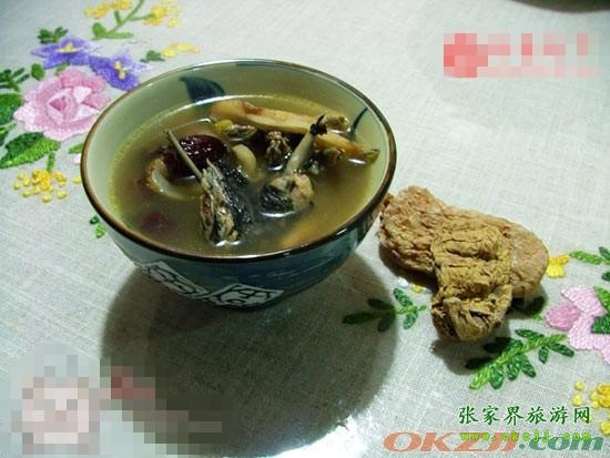 烏雞天麻湯極具營養(yǎng)價值,是民間滋補“秘方”。“張家界”八大公山一帶的天麻,色金黃,透明發(fā)亮,是天麻中的上品,可治療頭暈?zāi)垦?、中風偏癱,又滋補,又治病,兩全其美。 |