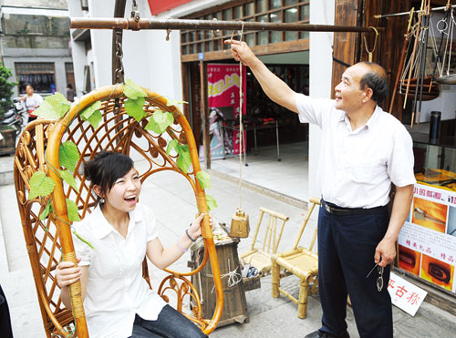 歲月悠悠,蒼桑易老,蘆江八景隨同古鎮(zhèn)的式微而漸行漸遠(yuǎn),八景的美麗也由此淡出了古鎮(zhèn)人的視線。然而記憶猶存,遺跡猶在:濤聲依舊的湘江岸邊,一棵棵依然守望著碧水藍(lán)天的古柳,便收藏著當(dāng)年“柳浪聞鶯”的遺傳秘碼和鶯啼聲聲中的浪漫故事。散落在古鎮(zhèn)的街巷庭院和廢墟中依然完好的南瓜石墩,便有往日夏天傍晚的習(xí)習(xí)涼風(fēng)從石中逸出,輕聲訴說著“石礅夏涼”的美妙光景。湘江邊那座曾經(jīng)映照過船帆點(diǎn)點(diǎn)和一江逝水的樓閣,雖然雕梁畫棟已成虛而遺跡難覓,卻被作為“望江樓”商標(biāo)復(fù)活在了名聞遐邇的靖港布鞋上,讓后人依然能一睹“樓鏡瀟湘”的精致。那兩棵“七星傲月”檀和“八卦傳神”樹的奇枝妙冠雖然因蒼老而羽化登仙,盤虬蒼然的樹根卻依然鼾眠在古鎮(zhèn)天主教堂的斷垣殘椽和插花寺土堆下夢著曾經(jīng)的枝繁葉茂和傳奇體驗(yàn)。“扇子迎客”的扇子碼頭,“獨(dú)腳鶴立”的獨(dú)腳吊樓,“梨園戲水”的臨河戲臺,從它們留守在故址中的石墩、石柱、石板和巧奪天工的石雕,依然能喚起古鎮(zhèn)人從記憶深處復(fù)原出它們當(dāng)年在熱鬧繁華中的妖嬈和神圣。