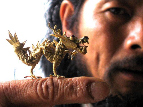 長沙地區(qū)的傳統(tǒng)工藝品,系用棕櫚葉編成的各種動(dòng)物,種類很多,如鳥、蟲、魚、蝦、鶴、蛇等,形象逼真,栩栩如生。曾參加德國萊比錫世界博覽會,人們贊嘆它“不可思議”,法國藝術(shù)館特意收購珍藏。棕櫚為常綠喬木,望城縣湘江兩岸都有種植,藝人們采集棕葉,編織成各種小動(dòng)物,成為“江南一絕”。