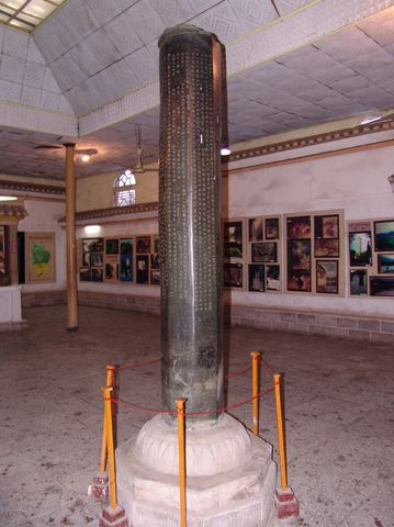 彭士愁戰(zhàn)敗后于后晉天福五年(公元940年)與馬希范議和,把戰(zhàn)爭的經(jīng)過和議和的條款,鐫刻于銅柱之上。銅柱重五千斤,高丈二尺,入土六心,形為八面,中空,內(nèi)實(shí)鉅錢,柱端覆蓋銅頂,銘誓狀于銅柱之上,立于會溪,宋天禧二年(公元1018年)重立時,又羼刻了一些土官銜名。清中葉,柱上銅頂被盜,沉于江心,柱內(nèi)銅錢亦被人以飴粘錢殆盡。清光緒十一年(公元1885年),永順府知府張?jiān)鴵P(yáng)建亭保護(hù)。民國年間亭被毀。”銅柱的銅質(zhì),精純光潤;八面所鐫顏、柳體陰文,雖經(jīng)千載風(fēng)雨洗刷,霜雪蝕磨,仍清晰如初。溪州銅柱是研究土家族古代歷史的重要文獻(xiàn)。土家族視銅柱為神物。
