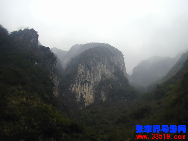 南天門——沿著河水一直往里走,在溪水最深處,可以仰望那隱藏在云霧里的南天門。它并不同于天門山的天門洞。它獨立于眾山之中,就像真正的通天大門,當(dāng)你翻過了前面的天門洞,卻還要再通過這座南天門,方可真正羽化登仙。南天門旁邊的幾座山峰,也都生的奇形怪狀,倒也天然形成了一個個大大小小的自然景觀。宛如天兵天將般守衛(wèi)南天門的將軍巖,象征南天門仙家氣息的蠟燭峰等,散落在四周,構(gòu)成了一個整體的山體奇觀。
