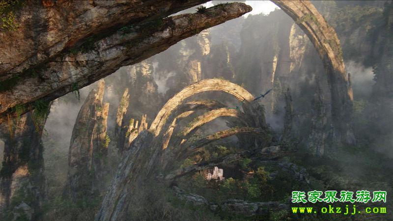 巍巍群山漂浮在天空,云霧繚繞,美麗壯觀……這是電影《阿凡達》中的經(jīng)典場景。阿凡達的全球熱映使人們對這部電影充滿了驚嘆和好奇,而這部影片奇幻的拍攝地到底是在哪里這一問題也引發(fā)了影片熱愛者的紛紛推測。導(dǎo)演卡梅隆的一句“中國元素給《阿凡達》大大增色”不僅勾起了旅游愛好者的向往之心,更是引發(fā)了一場不小的爭論。片中美輪美奐的“哈利路亞山”讓人驚嘆向往,現(xiàn)實版的“哈利路亞山”到底是以黃山還是張家界的武陵源為背景,成了網(wǎng)友和旅游界的熱議焦點。“第42秒出現(xiàn)過張家界的南天一柱,第33分21秒出現(xiàn)過黃石寨的玉屏峰,第55分53秒出現(xiàn)過寶峰湖的瀑布……”在網(wǎng)上,有發(fā)帖者將這些在《阿凡達》影片中出現(xiàn)過的張家界景致一一羅列。通過慢放發(fā)現(xiàn),影片中大概有25分鐘完全是張家界的山水風(fēng)光。出現(xiàn)多次的是黃石寨前山的南天一柱,金鞭溪的劈山救母出現(xiàn)不低于5次,然而出現(xiàn)最多的還是寶峰湖瀑布和袁家界迷魂臺里面的擎天柱。而張家界和黃山的最大區(qū)別是黃山是花崗巖地貌,上面非常光滑,幾乎沒有植被,而張家界是石英砂巖地貌,上面植被覆蓋非常茂盛。