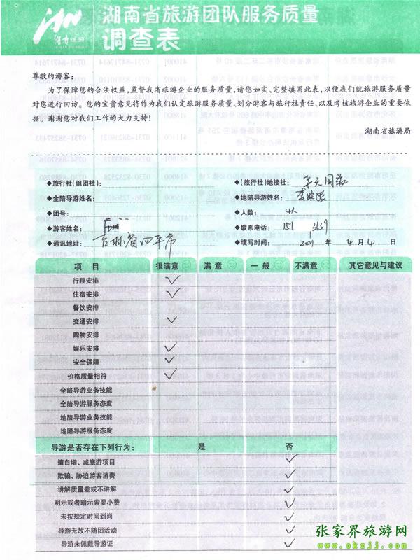 - 游客夏先生為表揚(yáng)導(dǎo)游李姣姣寫來表揚(yáng)信致我張家界... [14811]