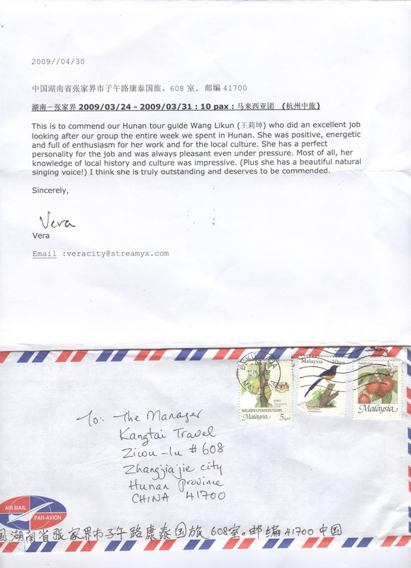 - 游客夏先生為表揚(yáng)導(dǎo)游李姣姣寫來表揚(yáng)信致我張家界... [14811]