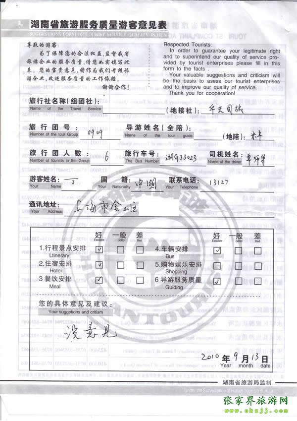 - 游客夏先生為表揚導(dǎo)游李姣姣寫來表揚信致我張家界... [14811]