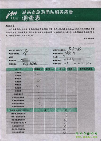 2011年4月30日霍先生一行7人旅游質(zhì)量反饋