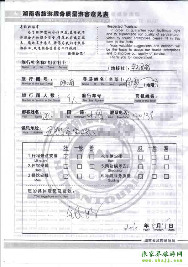 - 游客夏先生為表揚導游李姣姣寫來表揚信致我張家界... [14811]