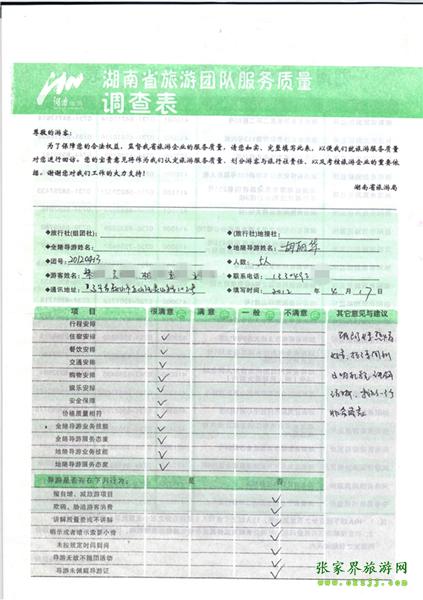 - 6月25日福建邵先生一行12人質(zhì)量反饋單