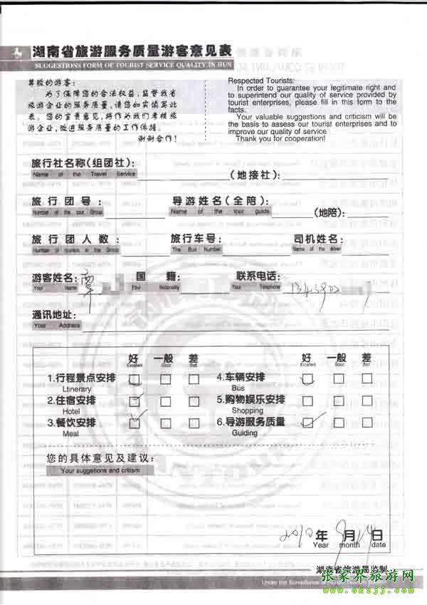 - 2011年10月26日張小姐一行18人旅游質(zhì)量反饋 [10482]