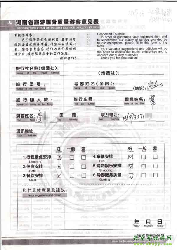 - 2011年10月26日張小姐一行18人旅游質(zhì)量反饋 [10482]