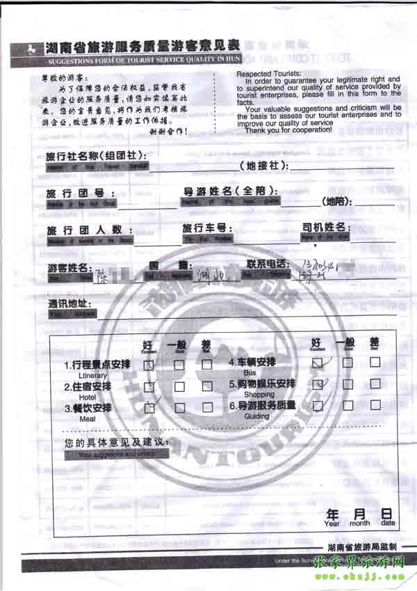 - 2011年10月26日張小姐一行18人旅游質(zhì)量反饋 [10482]