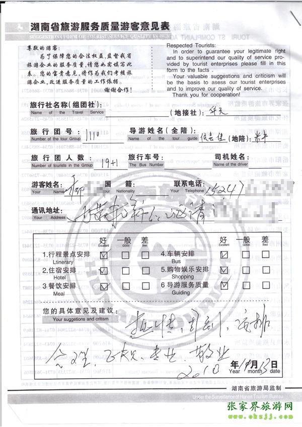 2010年11月13日柳先生旅游質(zhì)量反饋
