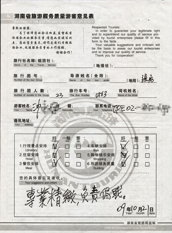 - 游客夏先生為表揚導游李姣姣寫來表揚信致我張家界... [14811]