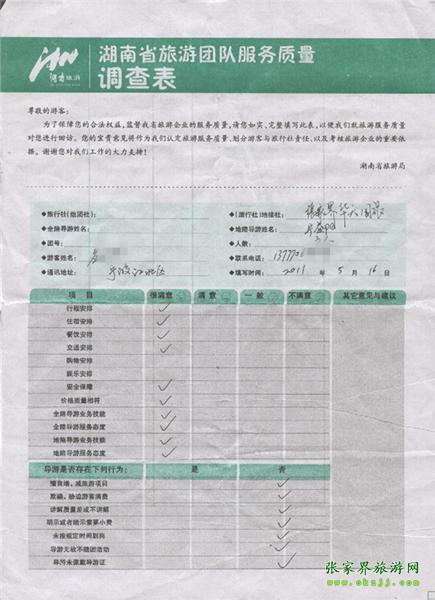 2011年5月16日應先生一行3人旅游質量反饋