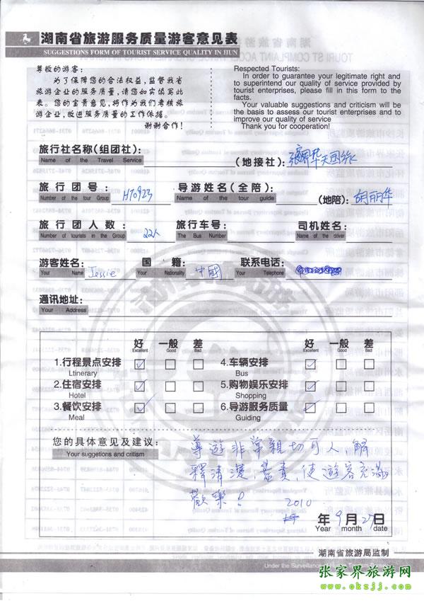 - 2011年10月26日張小姐一行18人旅游質(zhì)量反饋 [10482]